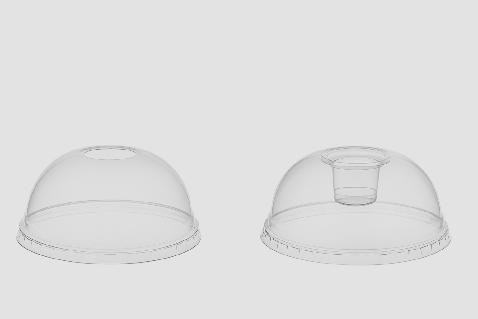 Passend für alle PET-Becher, 9,5 cm Durchmesser, konvex, MIT LOCH, OHNE LOCH, MIT PLUSLOCH, transparenter Deckel.