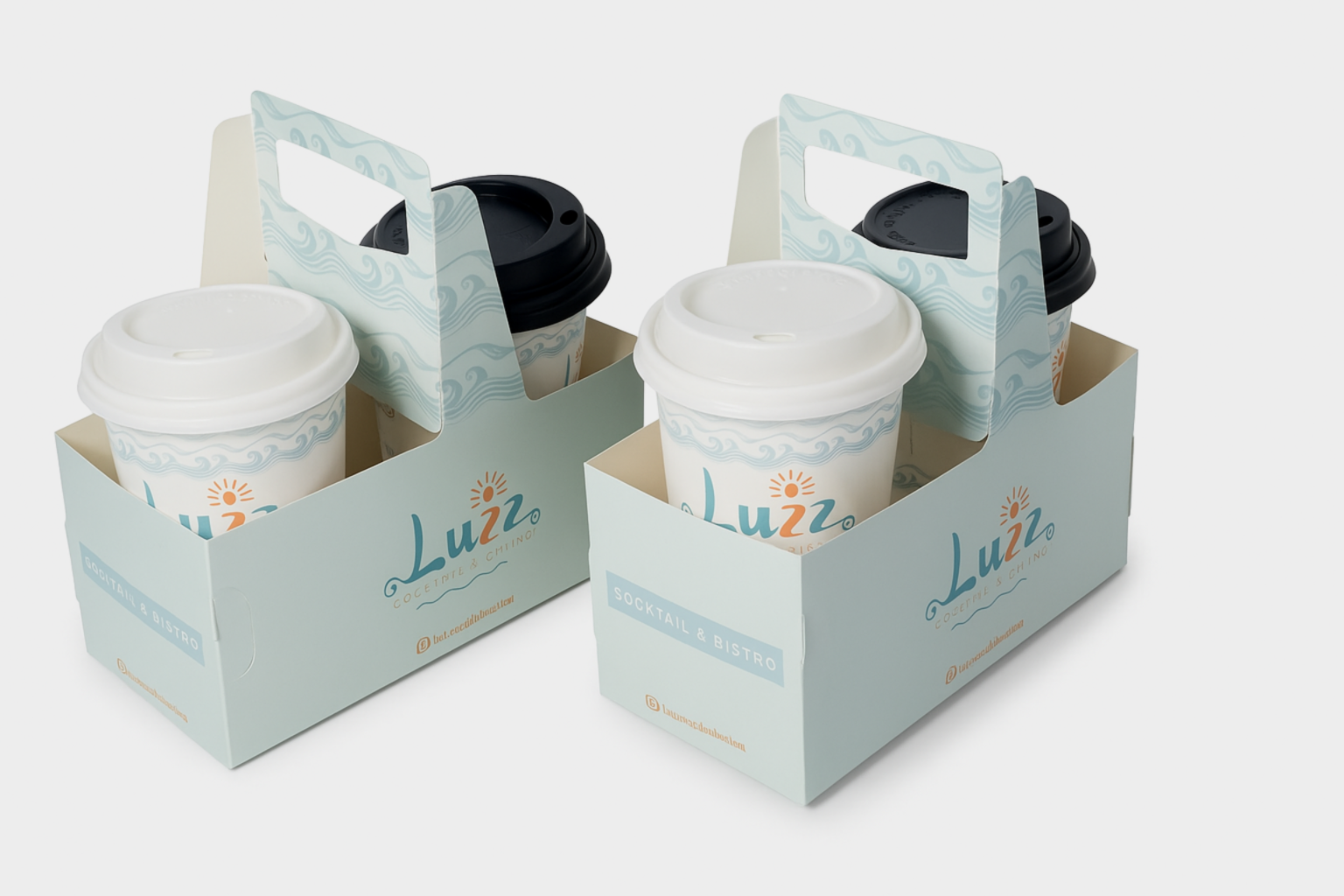 2'li Kraft yada Karton Firma Logolu Özel Baskılı Karton Bardak Taşıyıcı.